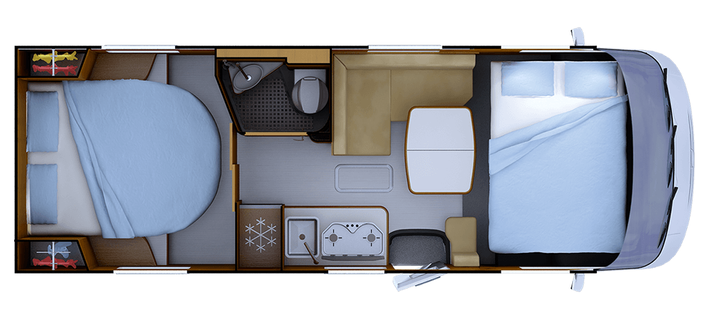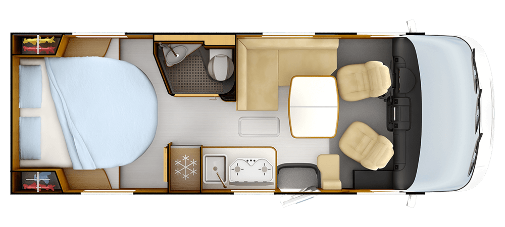 * 2+1 Con opzione senza letto cabina **Posti equipaggiati con cintura di sicurezza; posti omologati , consultare la guida tecnica. ***TRUMA Combi 6 iNet X
