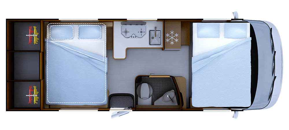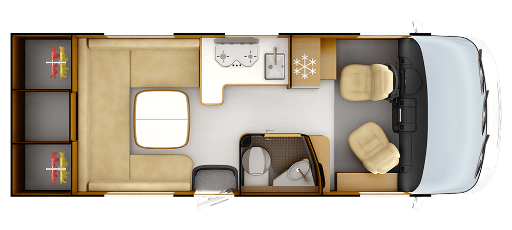 * 2+2+2 Con opzione letto a soffitto **Posti equipaggiati con cintura di sicurezza; posti omologati , consultare la guida tecnica. ***TRUMA Combi 6 iNet X
