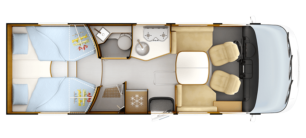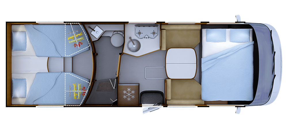 * 2+1 Con opzione senza letto cabina **Posti equipaggiati con cintura di sicurezza; posti omologati , consultare la guida tecnica. ***TRUMA Combi 6 iNet X