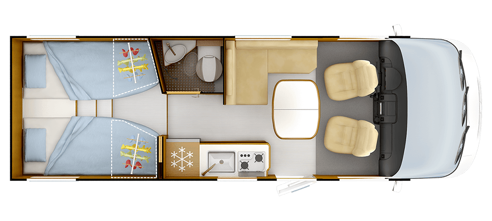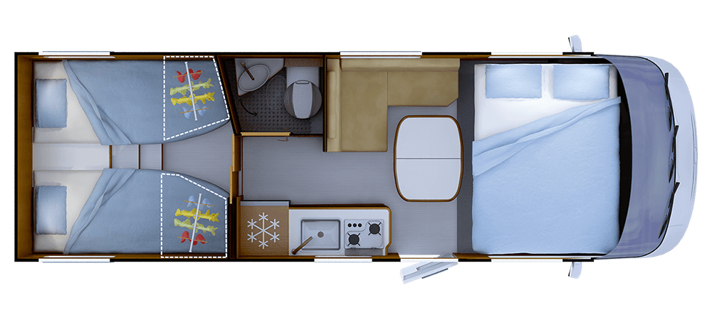 **Posti equipaggiati con cintura di sicurezza; posti omologati , consultare la guida tecnica. ***Truma Combi 4 diesel CP PLUS
